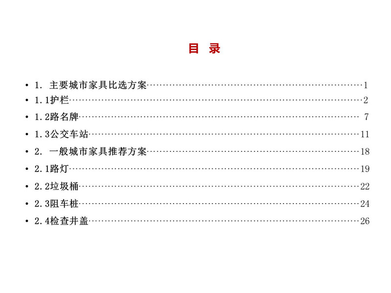 您好,为提升城市品位,美化市容环境,拟在市区道路新、改、扩建过程中,对城市家具实施统一规划设计、统一配套安装、统一管理维护。为做好这项工作,我们委托专业设计单位对交通护栏、路名牌、公交车站、路灯、检查井盖等主要城市家具进行了规划方案设计,经初步筛选确定了主要城市家具比选方案和一般城市家具推荐方案。