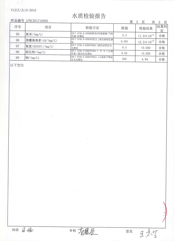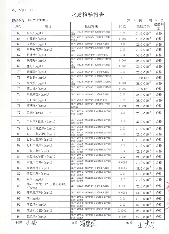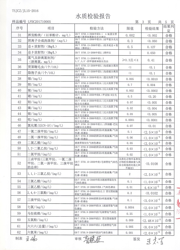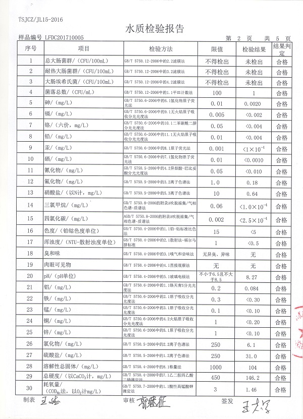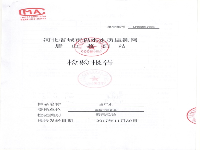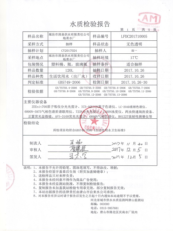 廊坊市清泉供水公司2017年水质检测报告